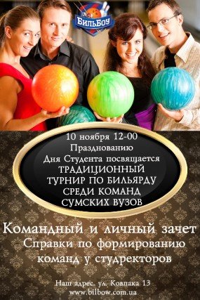 • Традиционный турнир по боулингу среди команд Сумских ВУЗов