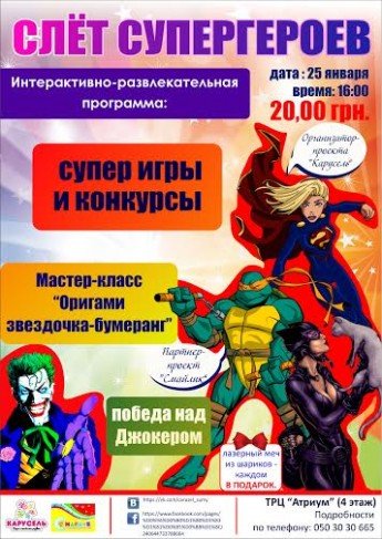 Супер герои и конкурсы, мастер-класс "Оригами звездочка-бумеранг", победа над Джокером.
