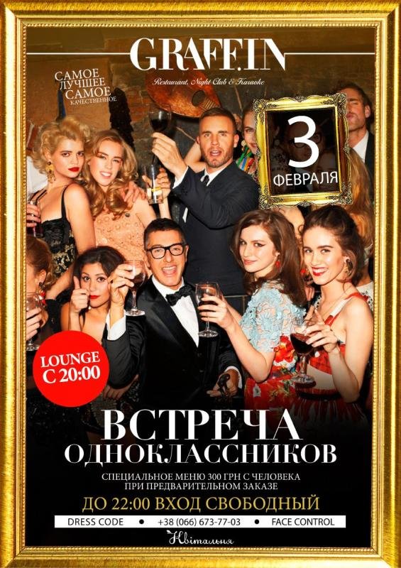 Тогда 3 февраля приглашаем к нам в ночной клуб #graffin на Встречу одноклассников!