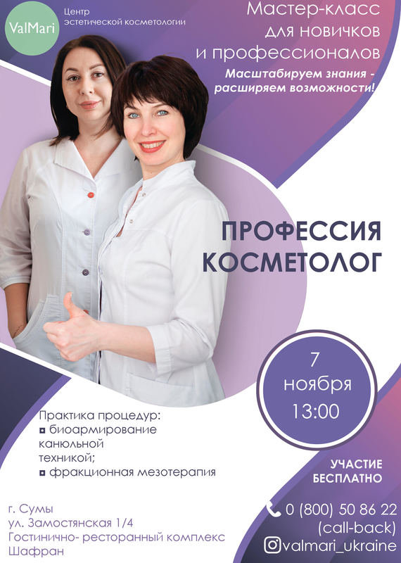 Каждый участник семинара примет участие в розыгрыше сертификата на любой курс обучения в центре эстетической косметологии ValMari.