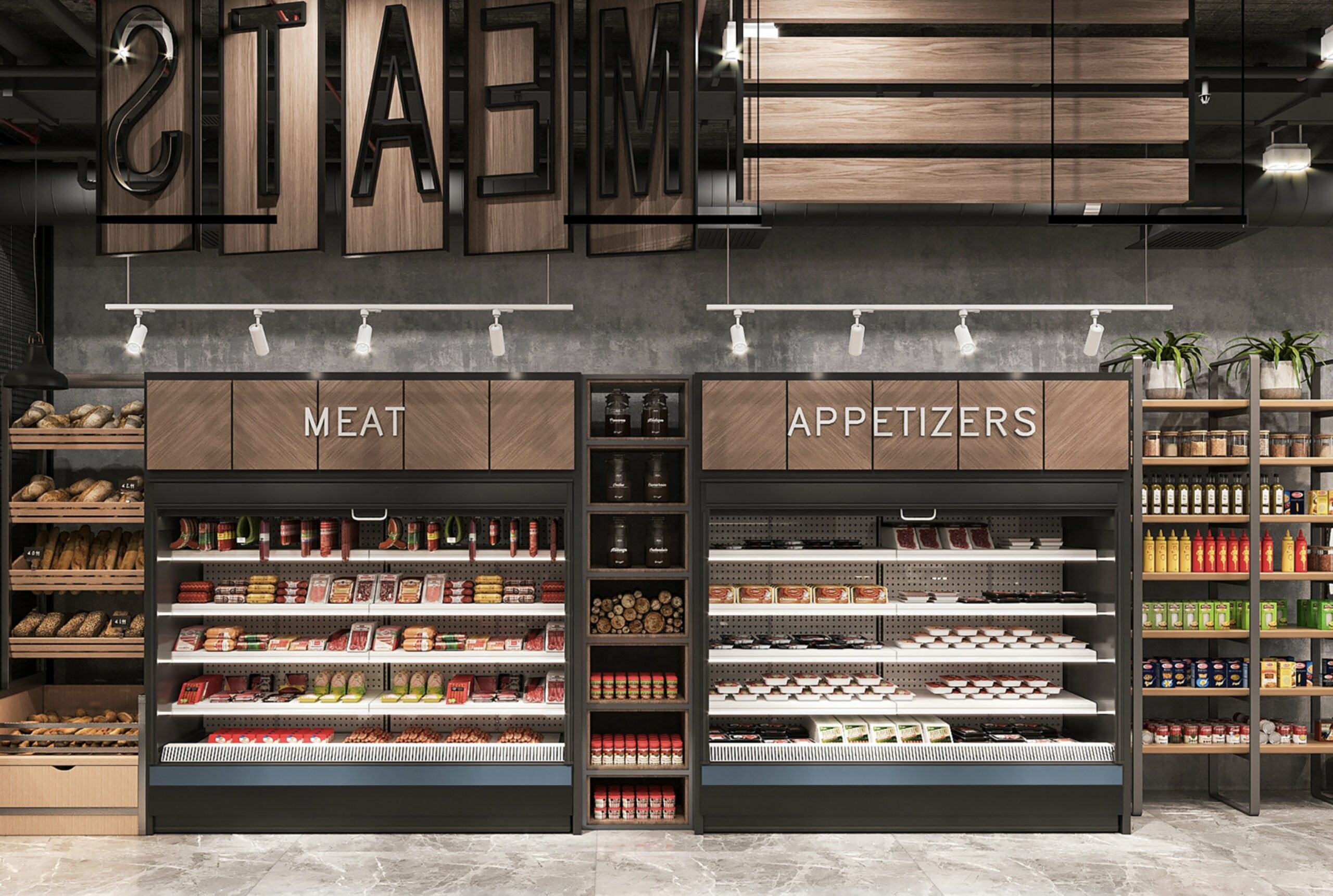 - Освещение — правильно подобранное освещение подчеркивает достоинства товара и создает привлекательную атмосферу. Оформление витрин продуктового магазина требует особого подхода к освещению, чтобы продукты выглядели свежими и аппетитными.