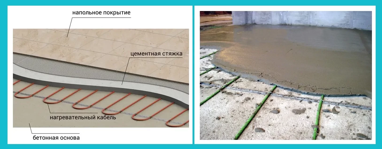- Кабельный - укладывается в стяжку, отлично подходит для капитального ремонта и обеспечивает равномерное распределение тепла;