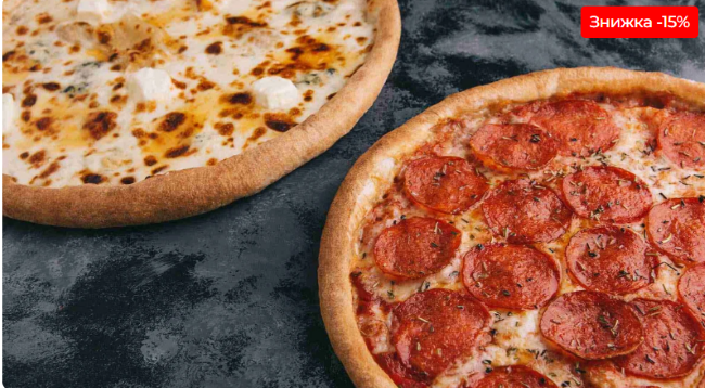 - Склад: Дві однакові піци на вибір (наприклад, дві «Маргарити» або дві «Пепероні»).