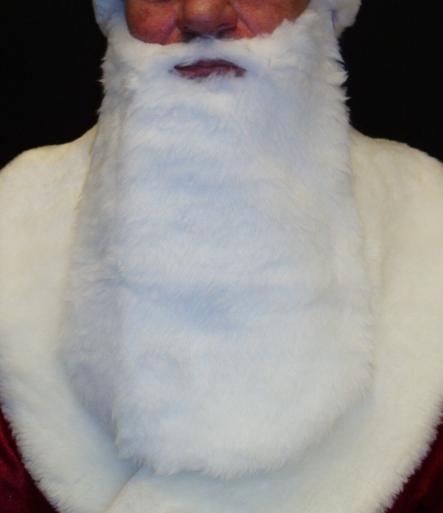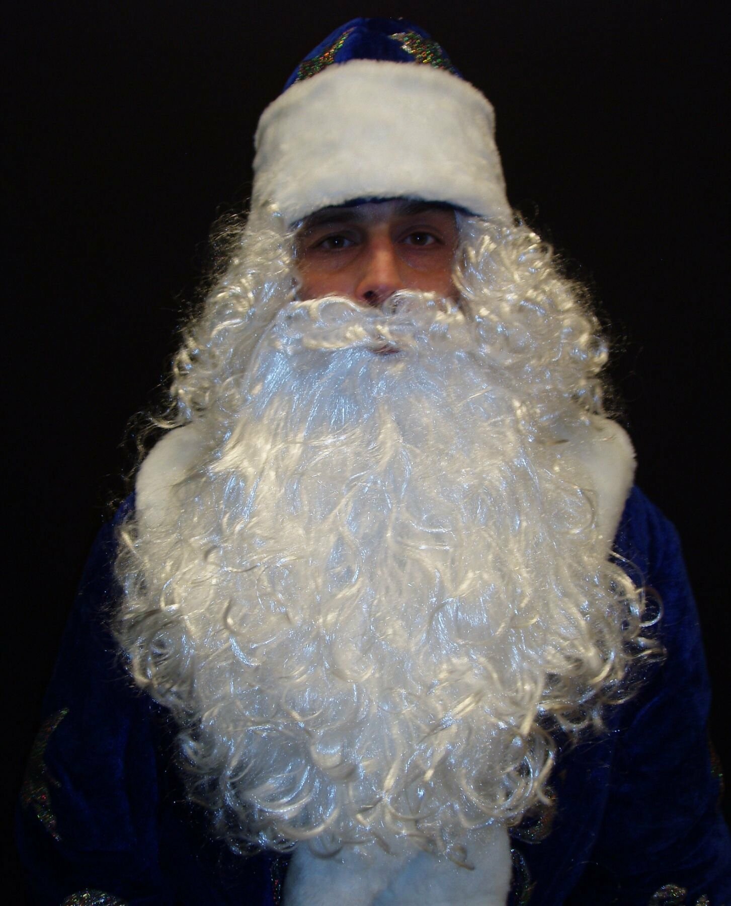 Вони легко фіксуються за допомогою еластичної резинки або тонких стрічок, швидко одягаються та не потребують складного догляду. Простота конструкції поєднується з охайним зовнішнім виглядом: бороди мають рівний білий або злегка кремовий відтінок, акуратну форму й достатню довжину, щоб зробити образ впізнаваним і святковим.