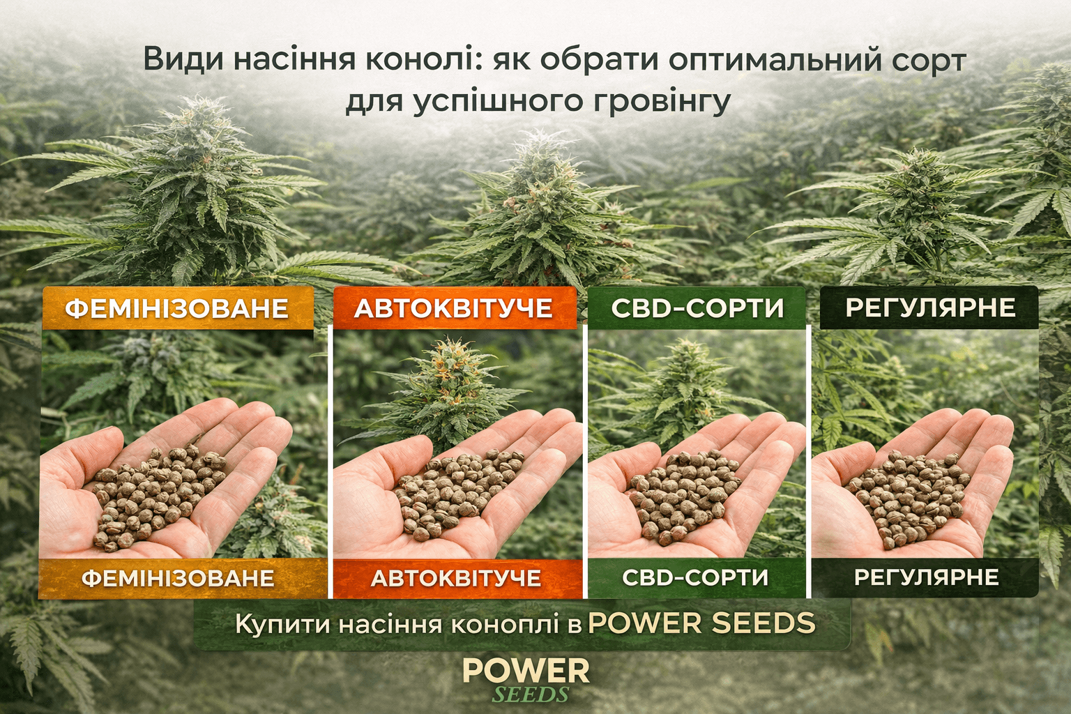 Вибір насіння — це перший і найважливіший крок у вирощуванні канабісу. Саме від нього залежить врожайність, якість бутонів, аромат і загальний успіх грову. Розуміння різниці між фемінізованими, автоквітучими, регулярними та CBD-сортами дозволяє зробити правильний вибір.