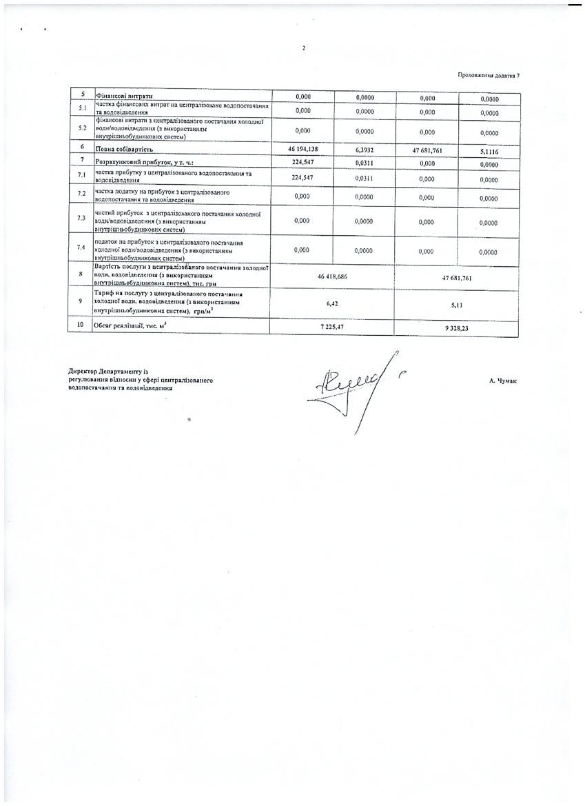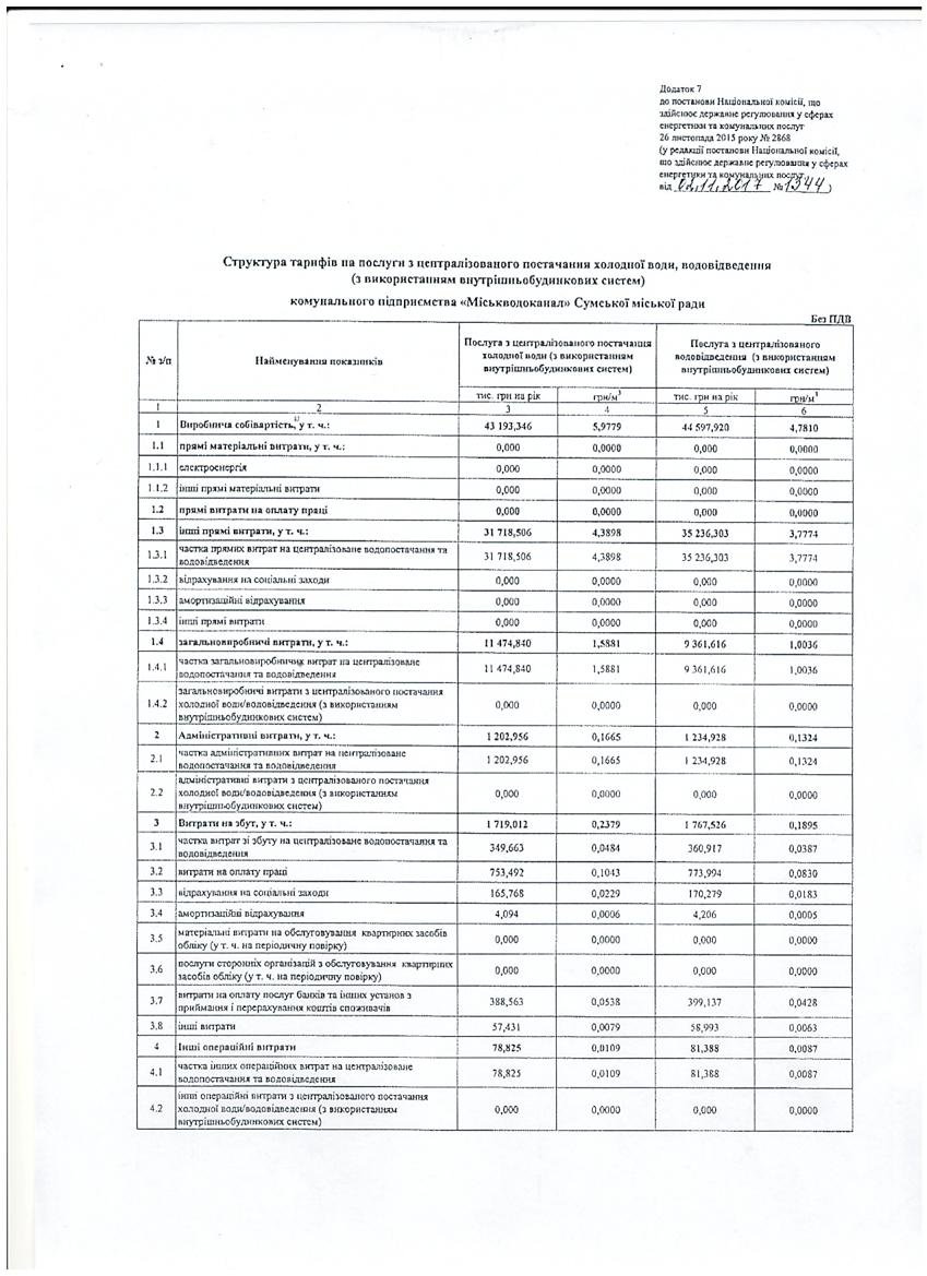 на услугу по централизованному снабжению холодной воды (с использованием внутридомовых систем) - 6,42 грн. / м3 (без НДС), 7,704 грн. / м3 (с НДС)