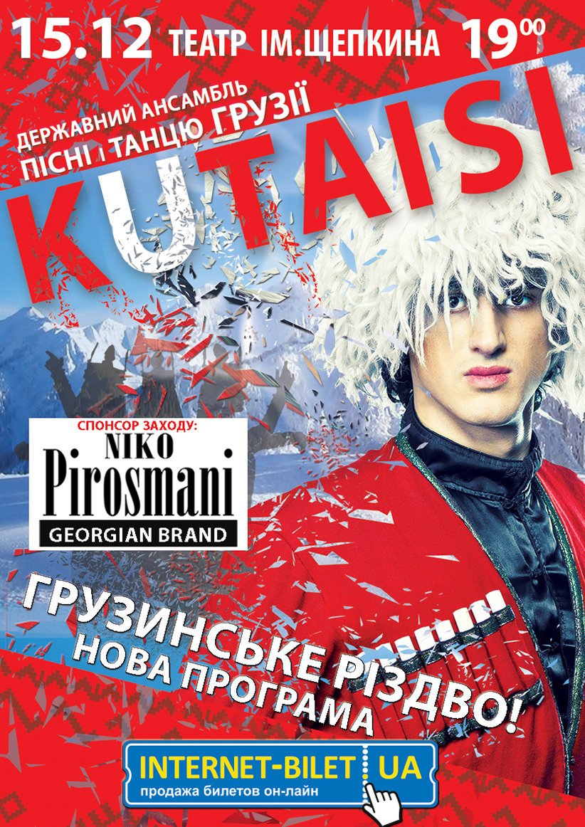 Не упустите уникальную возможность прикоснуться к этой культуре в рамках большого гастрольного тура ансамбля «KUTAISI» в городах Украины с новой программой «Грузинское Рождество». Уникальные постановки и хореография, декорации и роскошные костюмы, сопровождение оркестра и многоголосое пение подарят вам эмоции, которые озарят ваше сердце.