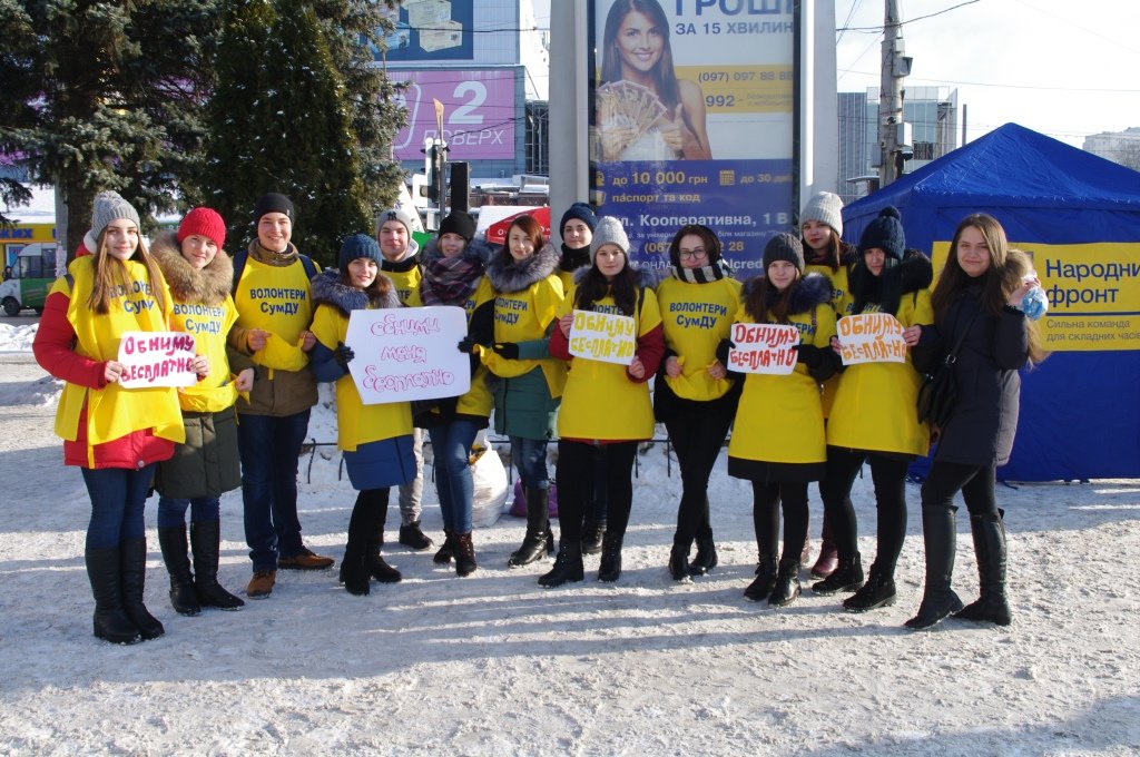 Сегодня акция приобрела новые масштабы, ведь представители волонтерского движения СумГУ провели параллельно акцию в Киеве, за что благодарят Егора Ганжу. Он подходил к прохожим, чтобы обменяться с ними приятными словами, а за хорошее настроение дарил конфеты.