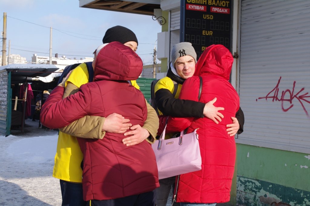 «Наша цель - поделиться эмоциями с незнакомцами и закалиться, - сообщила волонтер Виктория Гичкаленко. - Ведь доброжелательные объятия повышают иммунитет». Обошли несколько улиц, обняли около 300 человек и раздали более 100 конфет.