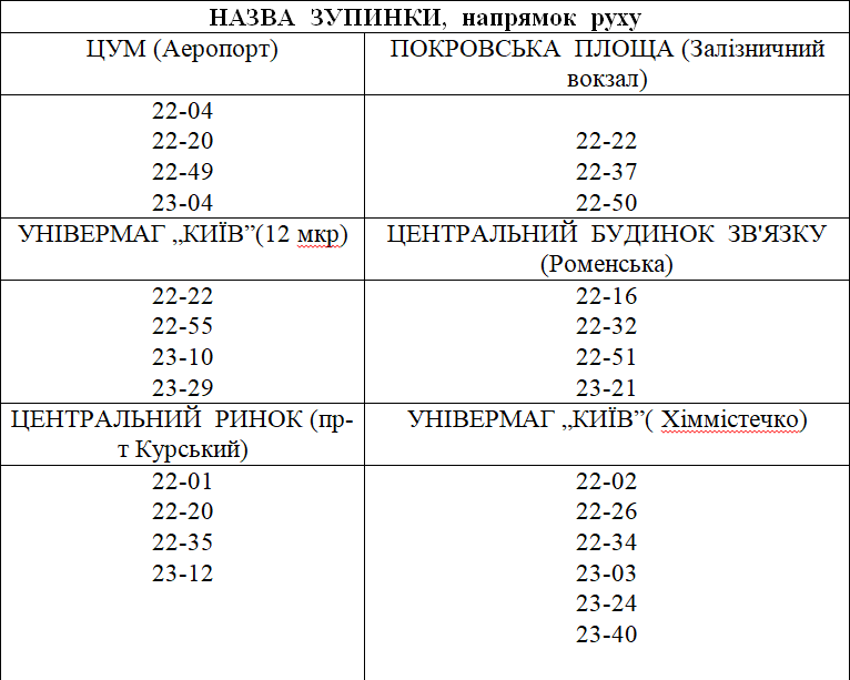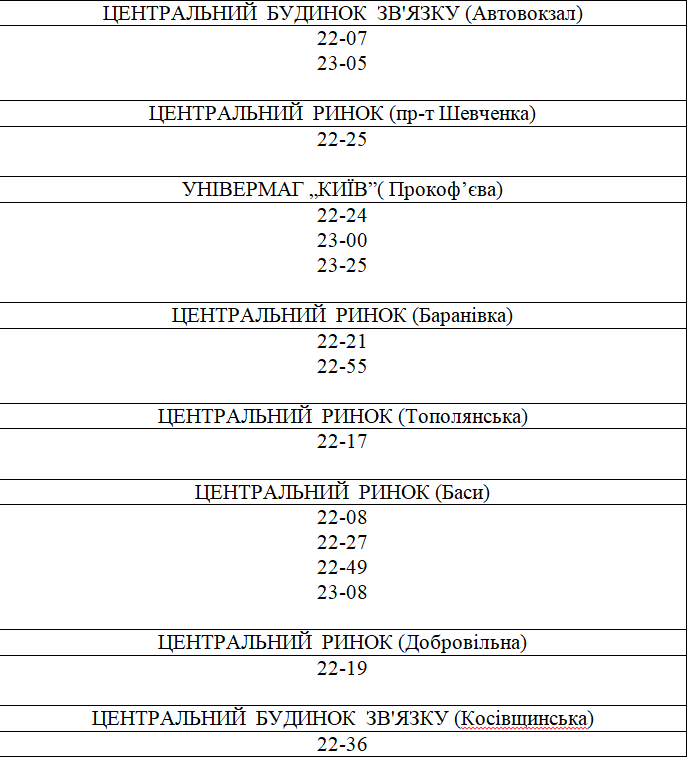 РОЗКЛАД РУХУ ТРАНСПОРТНИХ ЗАСОБІВ КП СМР „ЕЛЕКТРОАВТОТРАНС” 05.09.20 р. (ПІСЛЯ 22:00)