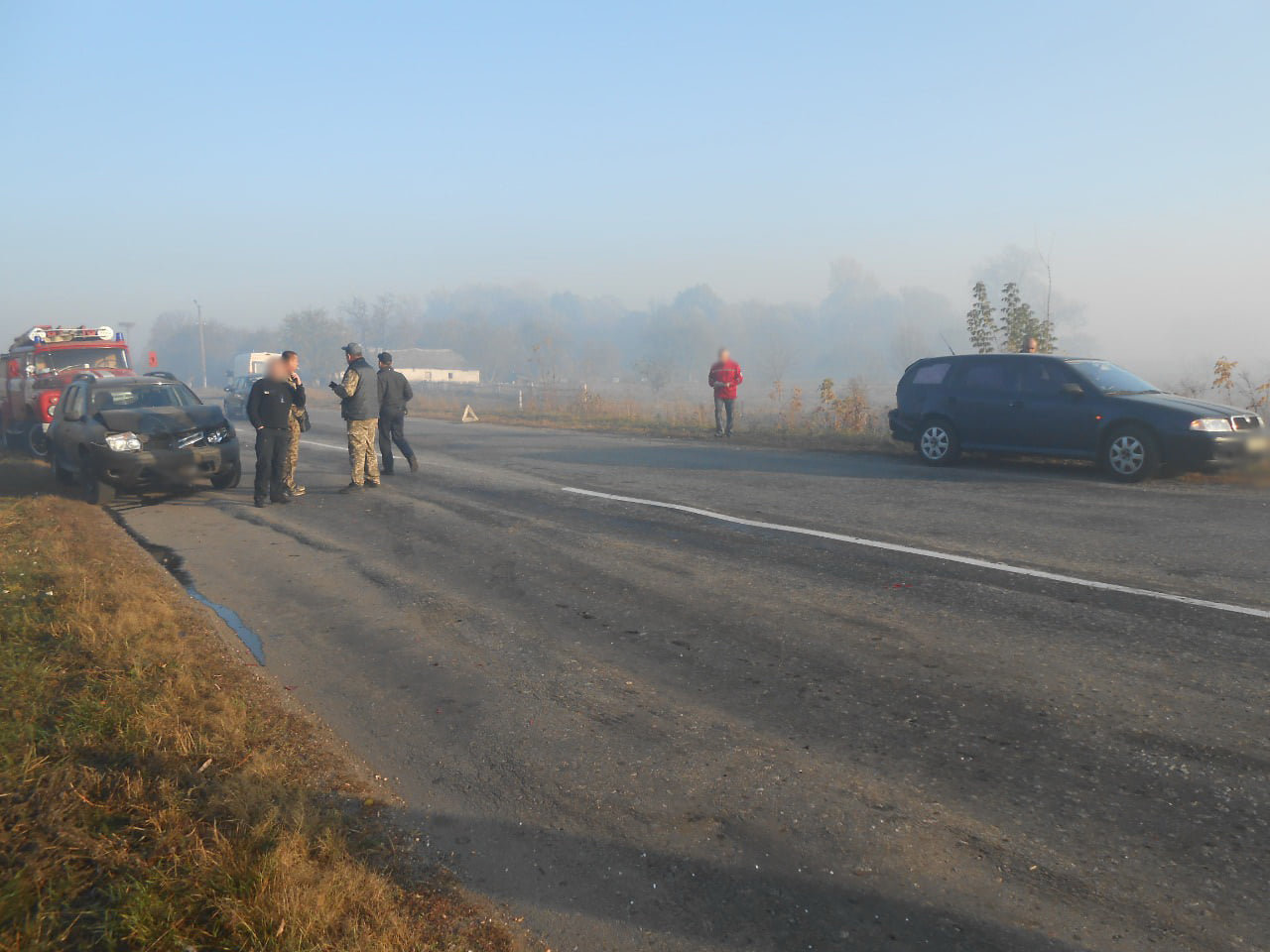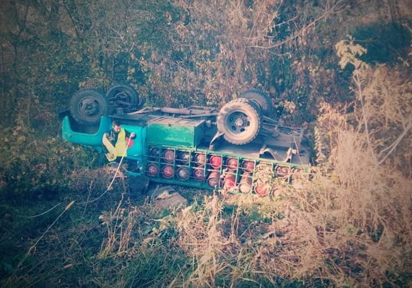 Спочатку через обмежену видимість на шляху слідування зіткнулися Рено Дастер і Шкода. Поки водії обох легковиків оглядали ушкодження транспортних засобів, біля них зупинився автомобіль ГАЗ, обладнаний для перевезення газових балонів побутового споживання. Водій вантажівки вийшов з кабіни, аби уточнити, чи не потрібна допомога учасникам ДТП. Поки між чоловіками тривала коротка розмова, у припарковану ГАЗівку врізався КАМАЗ. В результаті зіткнення більш легка вантажівка злетіла в кювет, на шляху зачепивши Рено Дастер.