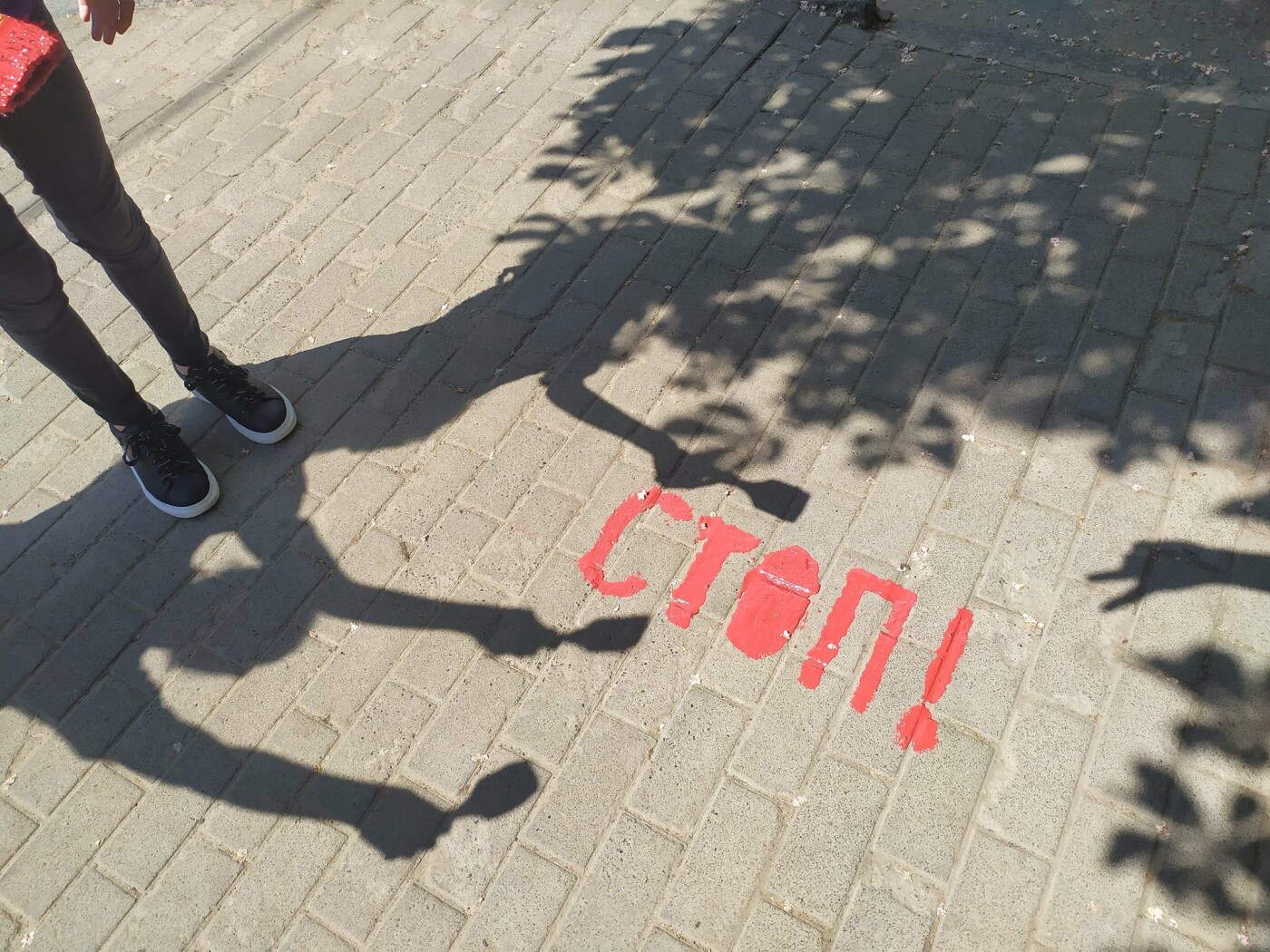Але доки міський голова розглядав звернення команди #0331, діти вирішили попередити пішоходів про небезпеку. Для цього вони нанесли червоною фарбою попереджувальні написи на тротуарах, де пішохідних переходів немає. Учні переконані, що попереджувальний напис «СТОП!» принаймні змусить замислитися, чи можна переходити дорогу саме в цьому місці.