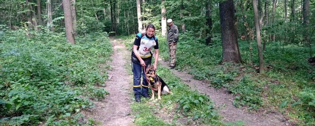 У лісі кінологічні служби тренуються шукати людей, які загубилися. Тут собаки повинні не лише знайти, але й керувати своїм голосом, доки не прибуде допомога.