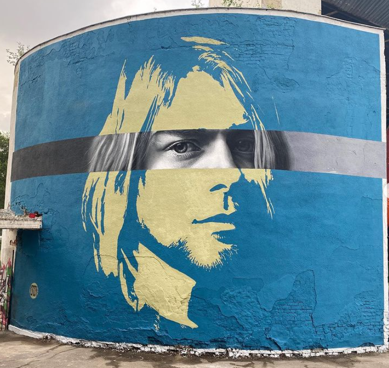 Малюнок присвячений солісту групи «Nirvana» Курту Кобейну. Автором роботи є відомий український стріт-арт художник Олександр Корбан @sasha.korban.