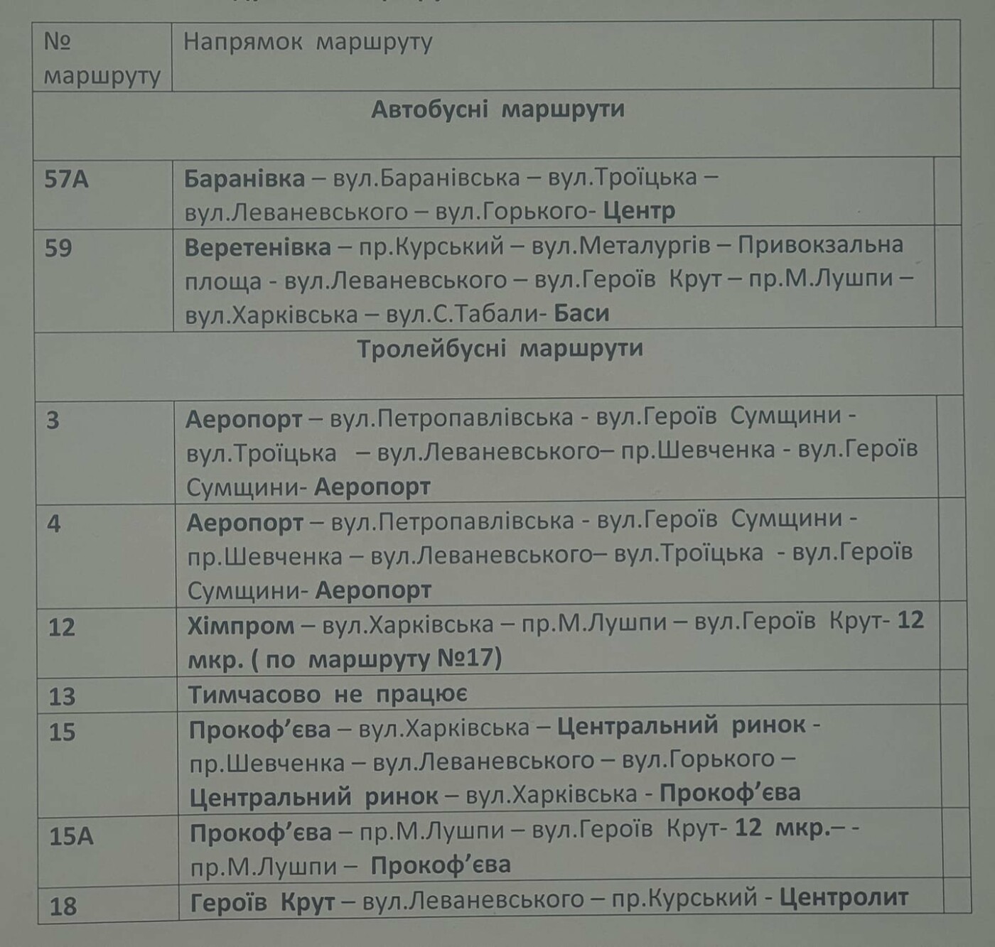 У Сумах через розриття на Привокзальній змінили схему руху комунального транспорту