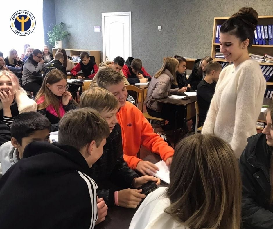 Представниця міської служби зайнятості Анастасія БАБЮК провела інтерактивне знайомство зі світом професій для десятикласників КУ «Міський міжшкільний навчально-виробничий комбінат».