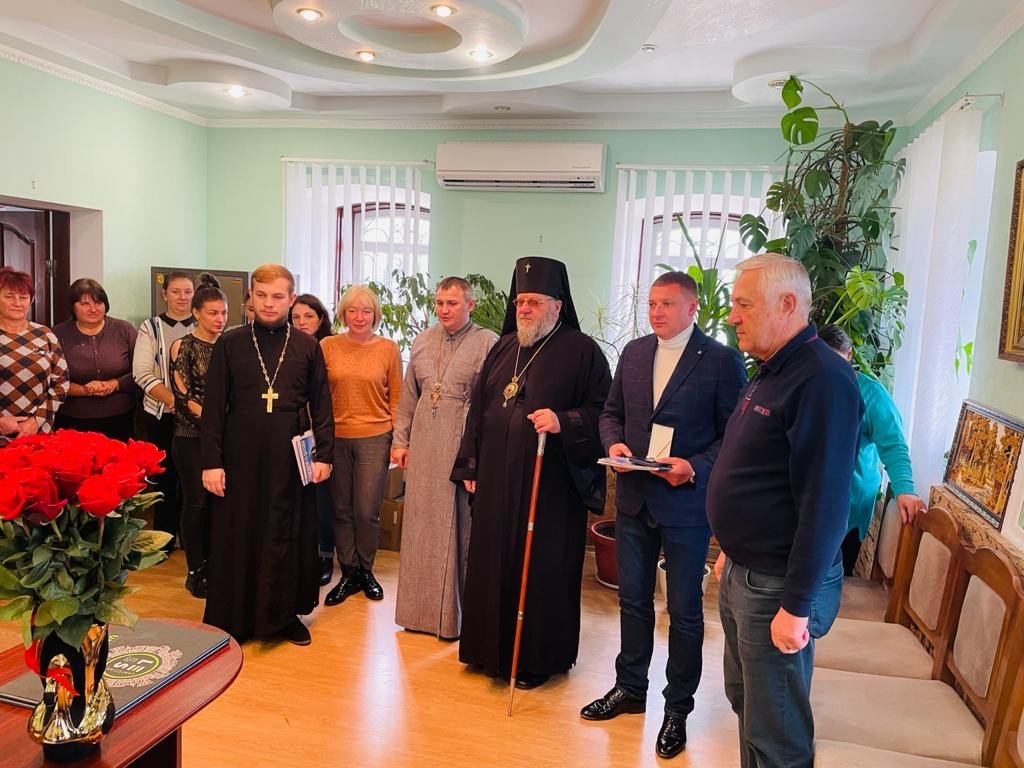 Депутату Сумської обласної ради від фракції «Слуга народу» Віталію Калініченку Архієпископ Сумський і Охтирський ПЦУ Мефодій вручив нагороду.