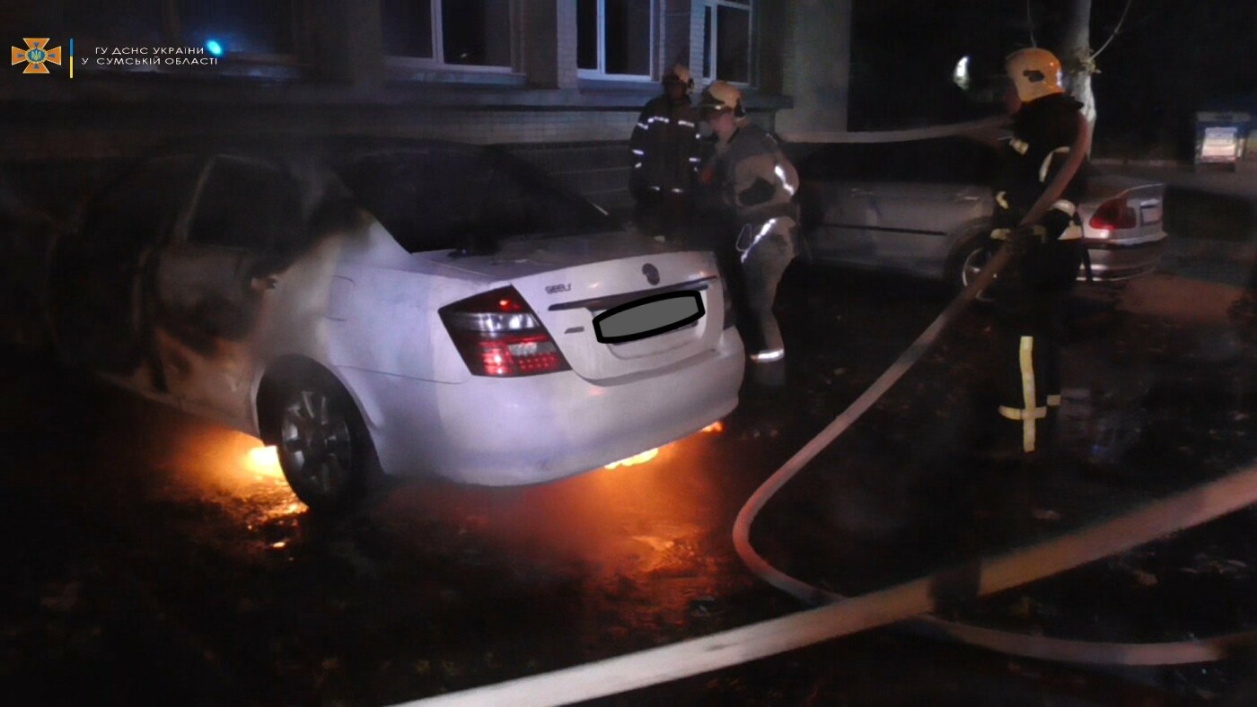 13 жовтня о 02:01, на лінію екстреного виклику 101, надійшло повідомлення про загоряння легкового автомобіля «Geely» Emgrand 7, по вул. Римського Корсакова в м. Суми.