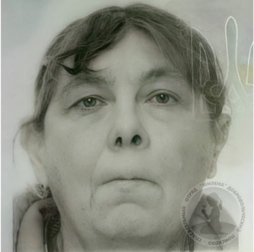 Прикмети: зріст 158-160, худа, темне кудряве волосся середньої довжини, блакитні очі. Була одягнена у блакитну легку куртку, зелену кофту на блискавці з капюшоном, світлі кросівки. При собі мала рожевий рюкзак, помаранчева сумка, пенсійне посвідчення. Особливі прикмети: горб на спині.