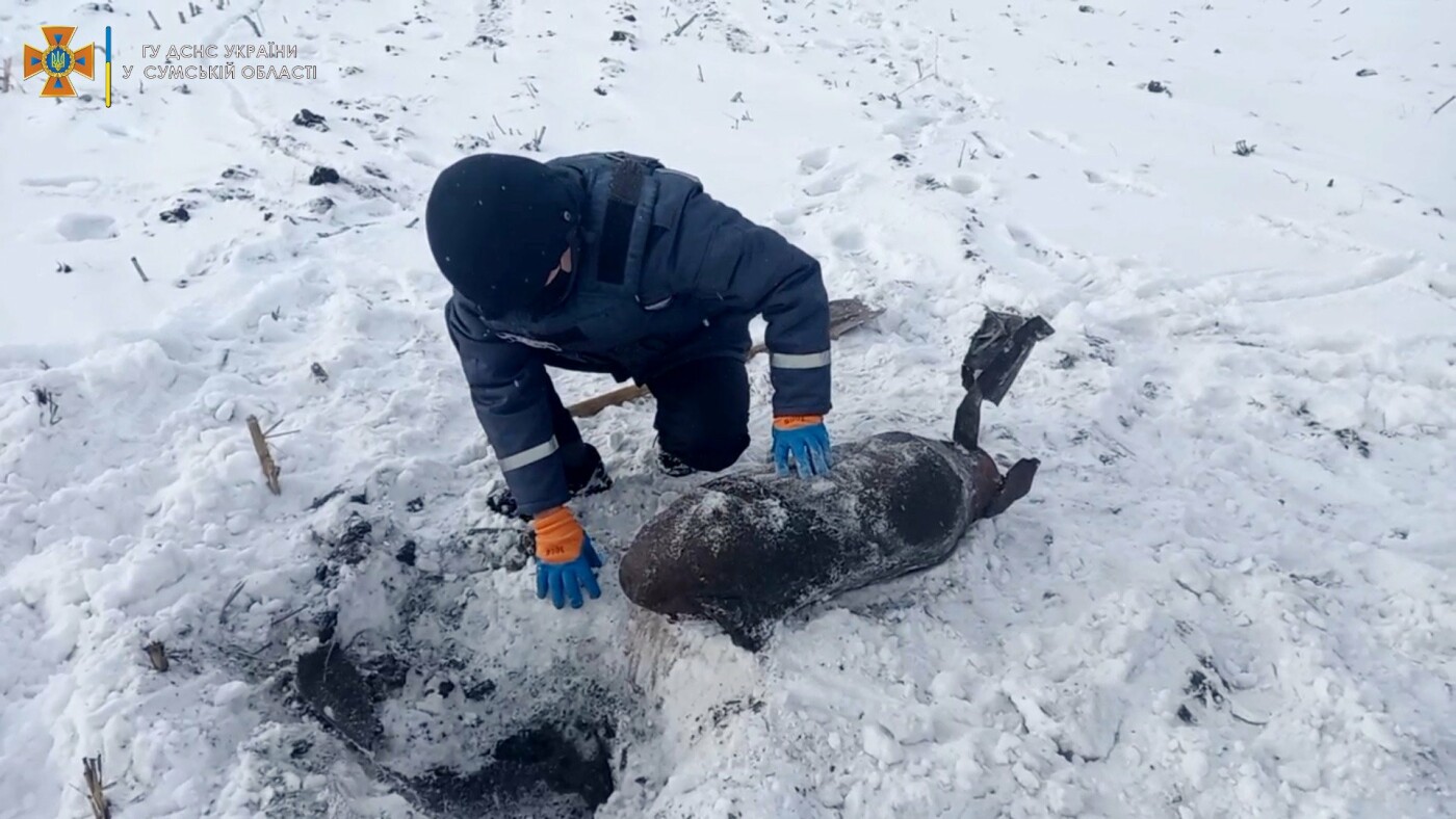 26 січня групою піротехнічних робіт міжрегіонального центру швидкого реагування Державної служби України з надзвичайних ситуацій (м. Ромни), проведені роботи зі знешкодження фугасної авіаційної бомби у Охтирському районі.