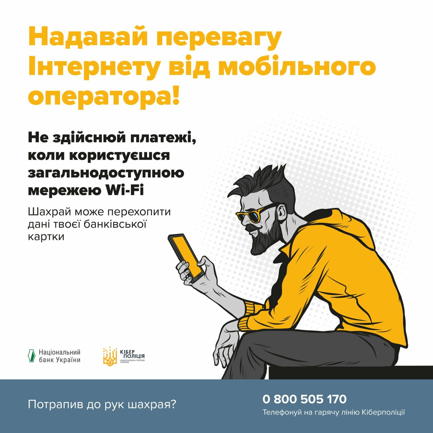 Якщо потрапив до рук шахрая, телефонуй на гарячу лінію Кіберполіції: 0 800 505 170.