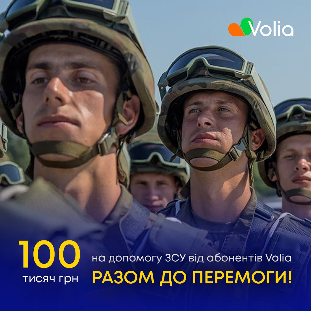 Абоненти Volia перерахували на допомогу ЗСУ 100 тисяч гривень