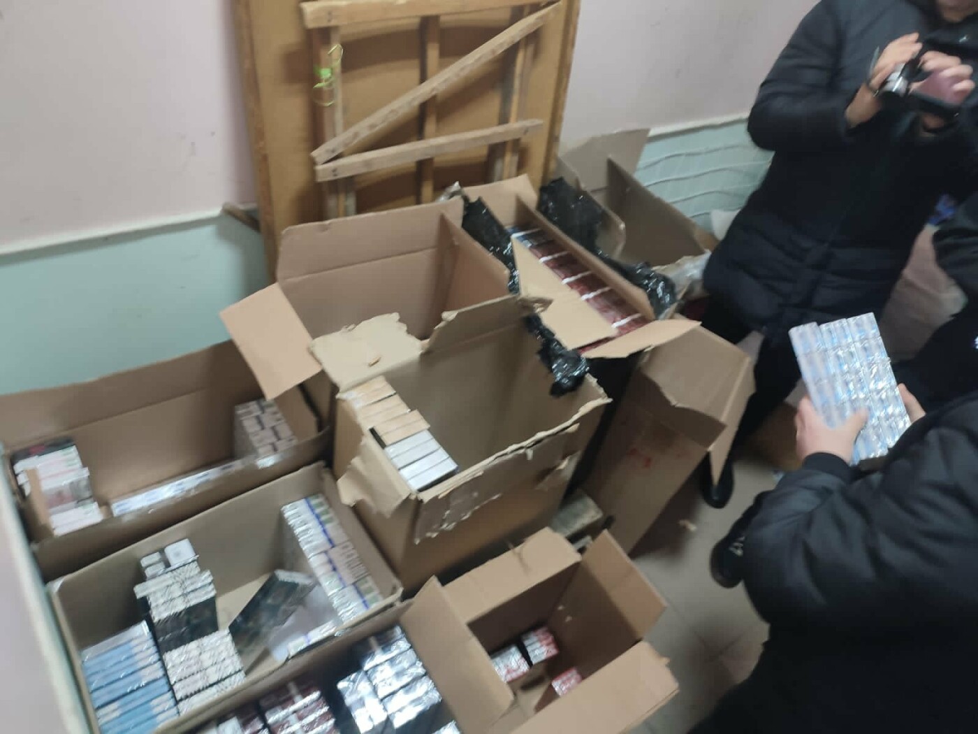 Незаконну діяльність обвинувачених припинено 18 листопада 2022 року, тоді правоохоронцями було проведено обшук в одному із підсобних приміщень торгового центру, за результатами якого виявлено та вилучено близько 2500 пачок незаконно виготовлених цигарок без марок акцизного податку.