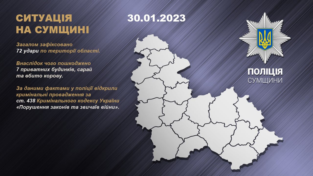Протягом минулої доби війська рф знову обстрілювали прикордонні населені пункти області. Загалом нараховано 72 удари.
