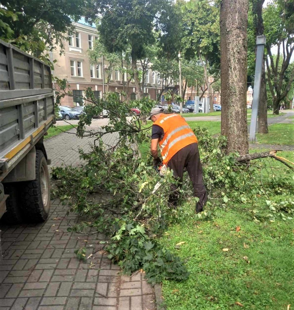 Негода повалила дерева та поламала гілки. Загалом до департаменту інфраструктури міста надійшли повідомлення про понад 10 адрес, де трапилася подібна ситуація. Так, пошкоджено зелені насадження на вул. Металургів, вул. Троїцька, вул. Героїв Небесної Сотні, вул. Революції Гідності, вул. С. Бандери, вул. Привокзальна, просп. М. Лушпи та у сквері «Дружби».