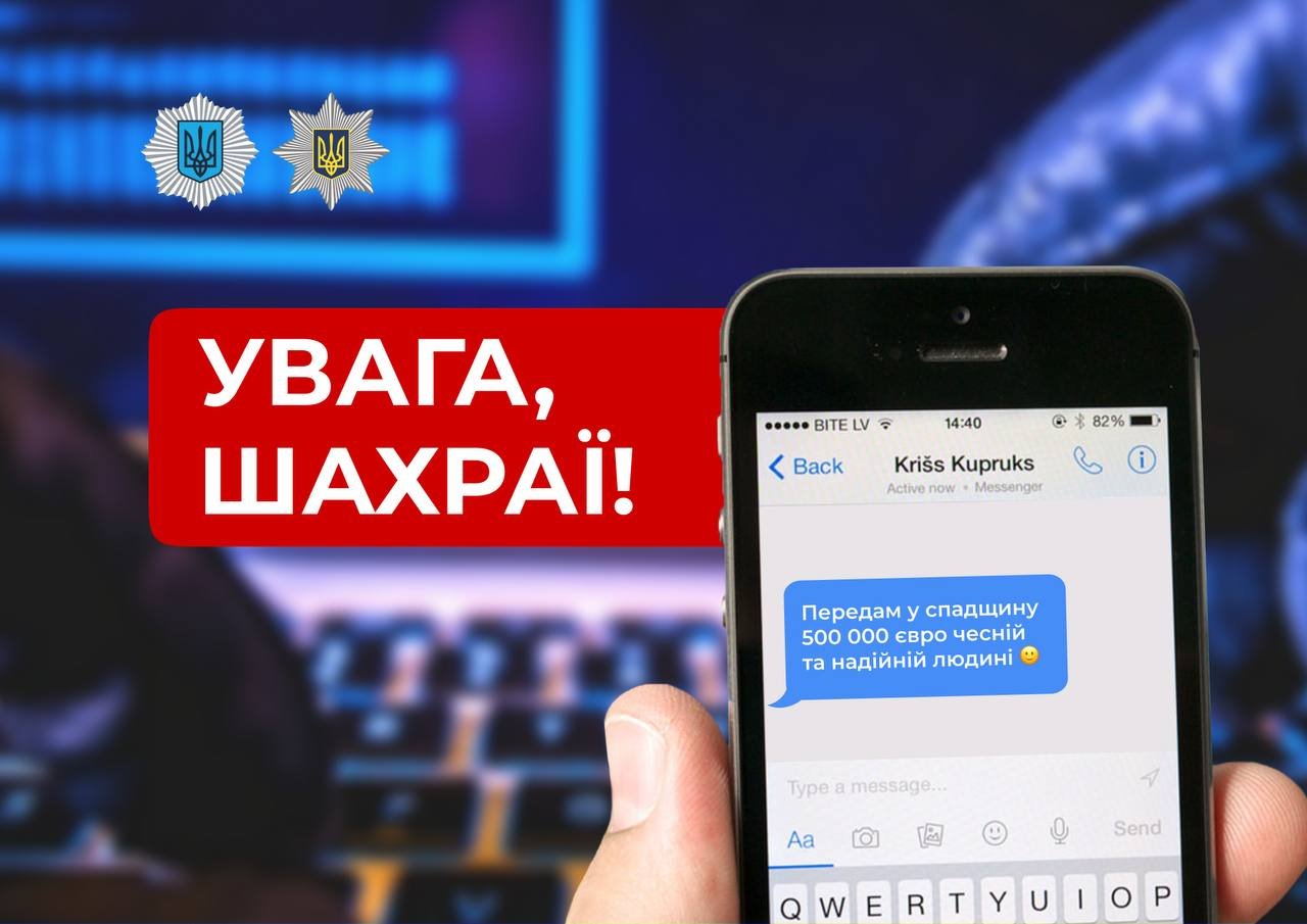 Зі слів заявниці, в одному з месенджерів незнайома жінка, яка представилась громадянкою Франції, написала їй про свою тяжку хворобу, у зв'язку з чим бажає залишити у спадок свої гроші в сумі близько 650000 євро.