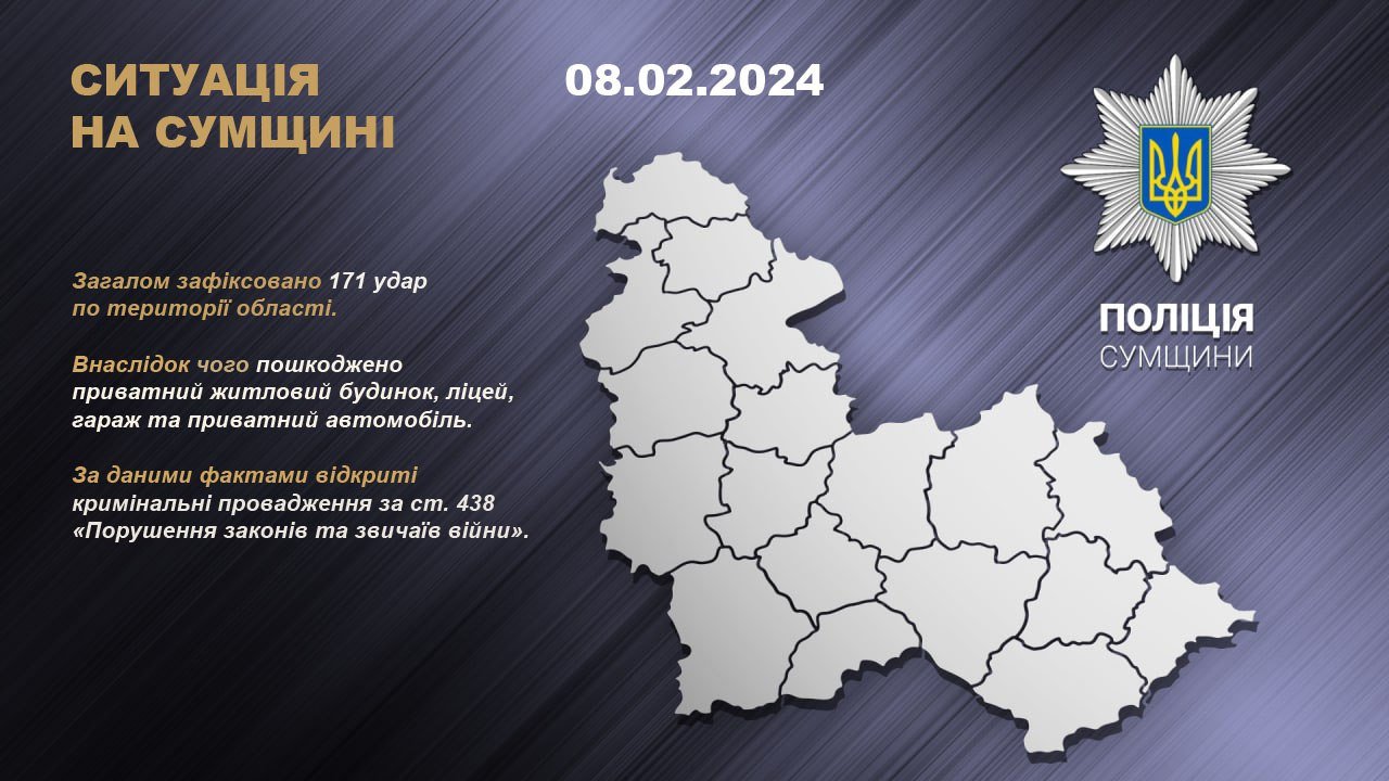 Упродовж минулої доби війська рф відкривали вогонь по території області. Загалом зафіксовано 171 удар.