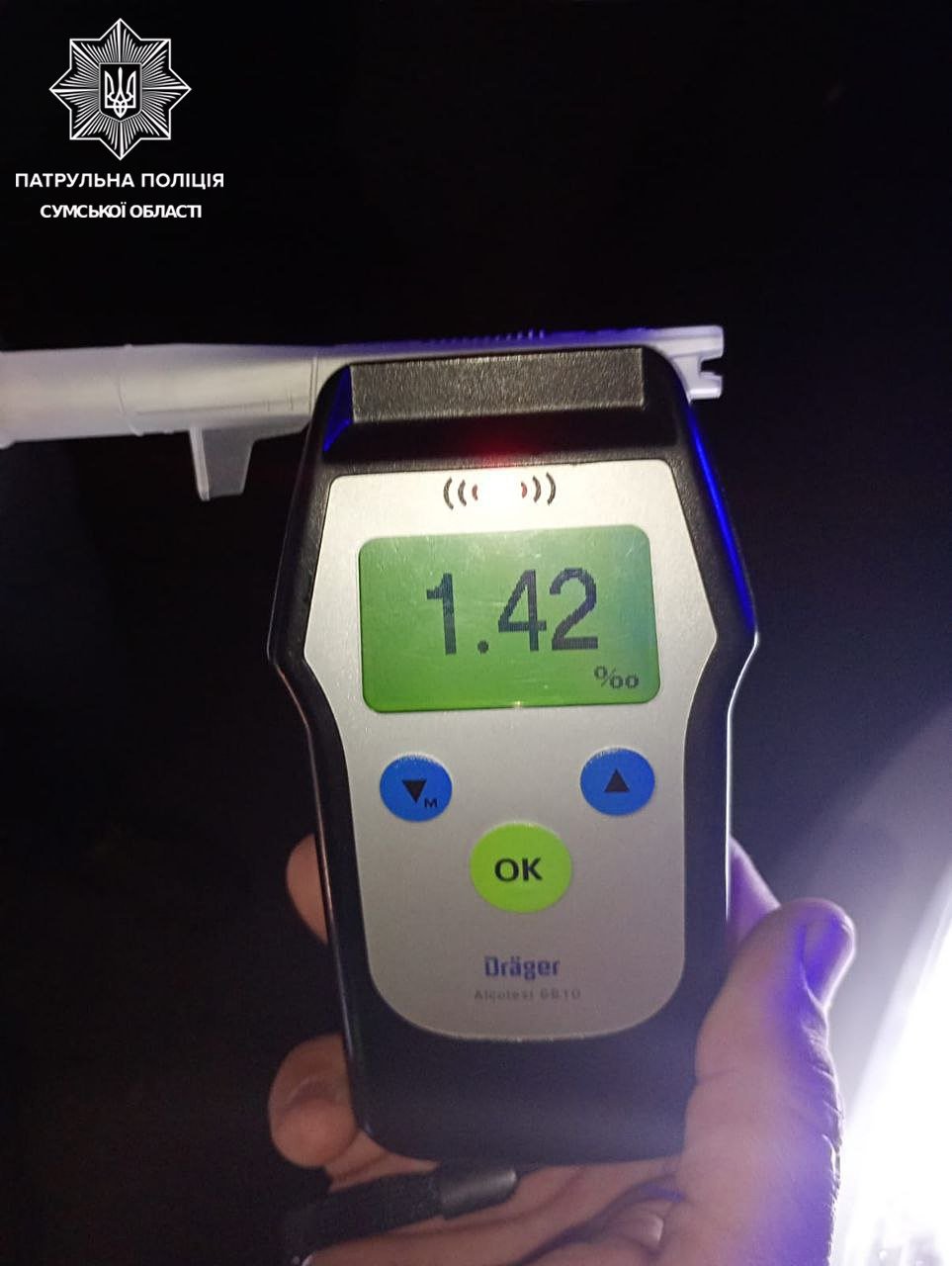 Під час перевірки документів у 34-річного керманича інспектори виявили ознаки алкогольного сп’яніння. Чоловік пройшов огляд на місці зупинки за допомогою приладу Драгер. Результат — 1,42 проміле алкоголю. Водій не погодився з результатом та виявив бажання пройти медичне освідування в закладі охорони здоров’я. Там лікарі підтвердили, що громадянин перебував у стані сп’яніння.