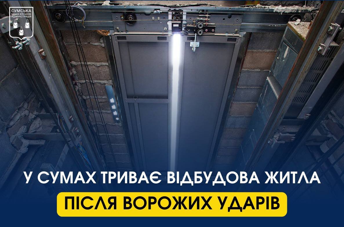 «Серед пріоритетних завдань, що стоять в переліку відновлювальних робіт, ліфти – невід’ємна складова інфраструктури житлового будинку. Облаштовуємо ліфти на тих постраждалих об’єктах, що є придатними для проживання, - пояснює начальник Сумської міської військової адміністраціїСергій Кривошеєнко. – Ми виділили кошти, необхідні для придбання ліфтового обладнання українського виробника: йдеться про 12 ліфтових комплексів».