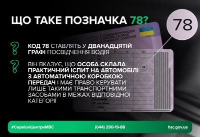 Однак, ця позначка викликає чимало запитань серед водіїв, які складали практичні іспити на транспортному засобі з автоматичною коробкою передач, але згодом планують сісти за кермо автомобіля з механічною трансмісією. Головний сервісний центр надає роз’яснення стосовно позначки «78» у посвідченні водія.