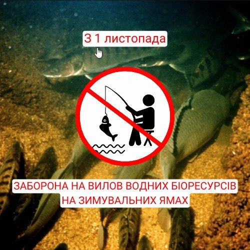 Згідно з Додатком 3 до Правил любительського рибальства (пункт 3 розділу ІІ), затверджені наказом Мінагрополітики та продовольства України від 19.09.2022 № 700 зареєстрованих в Міністерстві юстиції України 16.11.2022 за № 1412/38748, строки заборони добування (вилову) водних біоресурсів на зимувальних ямах у рибогосподарських водних об’єктах (їх частинах) – встановлено з 1 листопада поточного року до початку нерестового періоду.
