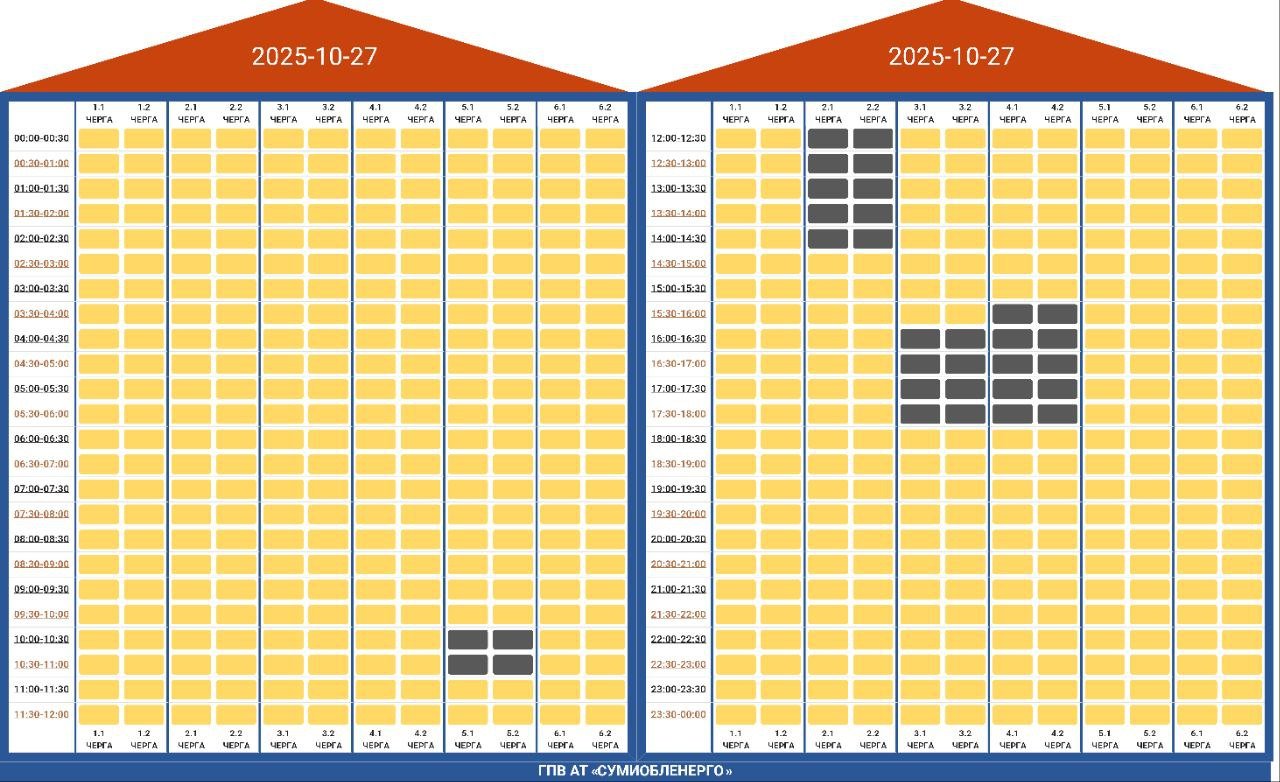 Із 16:00 до 19:00 графіки погодинних відключень на Сумщині діятимуть у обсязі 2 черг, відповідно до команди з НЕК "Укренерго.