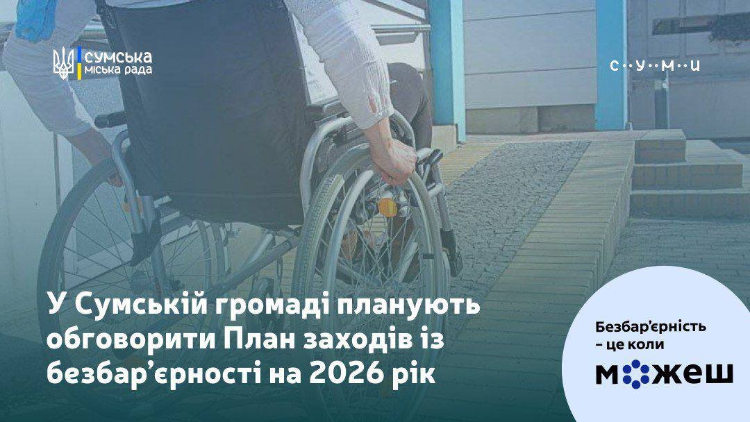 У Сумській громаді планують провести громадське обговорення проєкту Плану заходів щодо створення безбар’єрного простору на 2026 рік