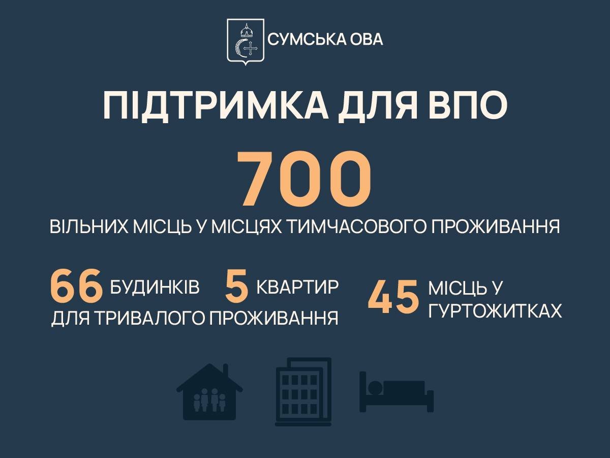 Також створено 24 місця тимчасового проживання для ВПО – наразі там є майже 700 вільних місць.
