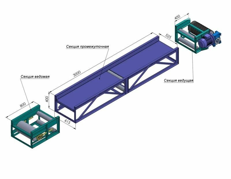 Посилений стрічковий транспортер модульної конструкції з підтримуючими роликами та жорстким бортом. Призначений для транспортування сипких матеріалів та штучних матеріалів невеликої фракції. Основні характеристики: - довжина загальна 10,2 м - ширина стрічки 500 мм - потужність приводу 2,2 кВт