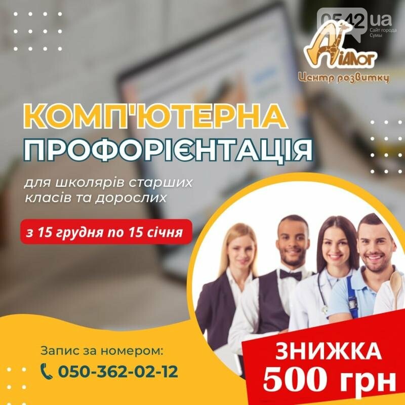 ?У Центрі розвитку «ДІАЛОГ» з 15 грудня до 15 січня проходить щорічна акція «Комп’ютерна профорієнтація для учнів 7-11 класів зі знижкою 20%.
